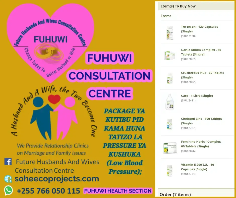 Pia pata virutubisho vya asili vyenye matokeo bora kwa bei ya punguzo kabisa, vitakavyokusaidia kuondokana na magonjwa sugu kama presha, kisukari, saratani, uvimbe, PID, matatizo ya mifupa, n.k.